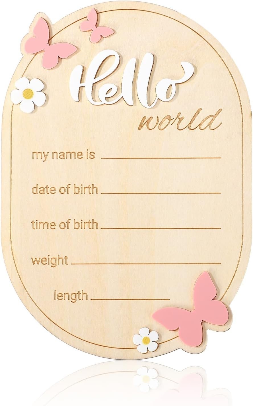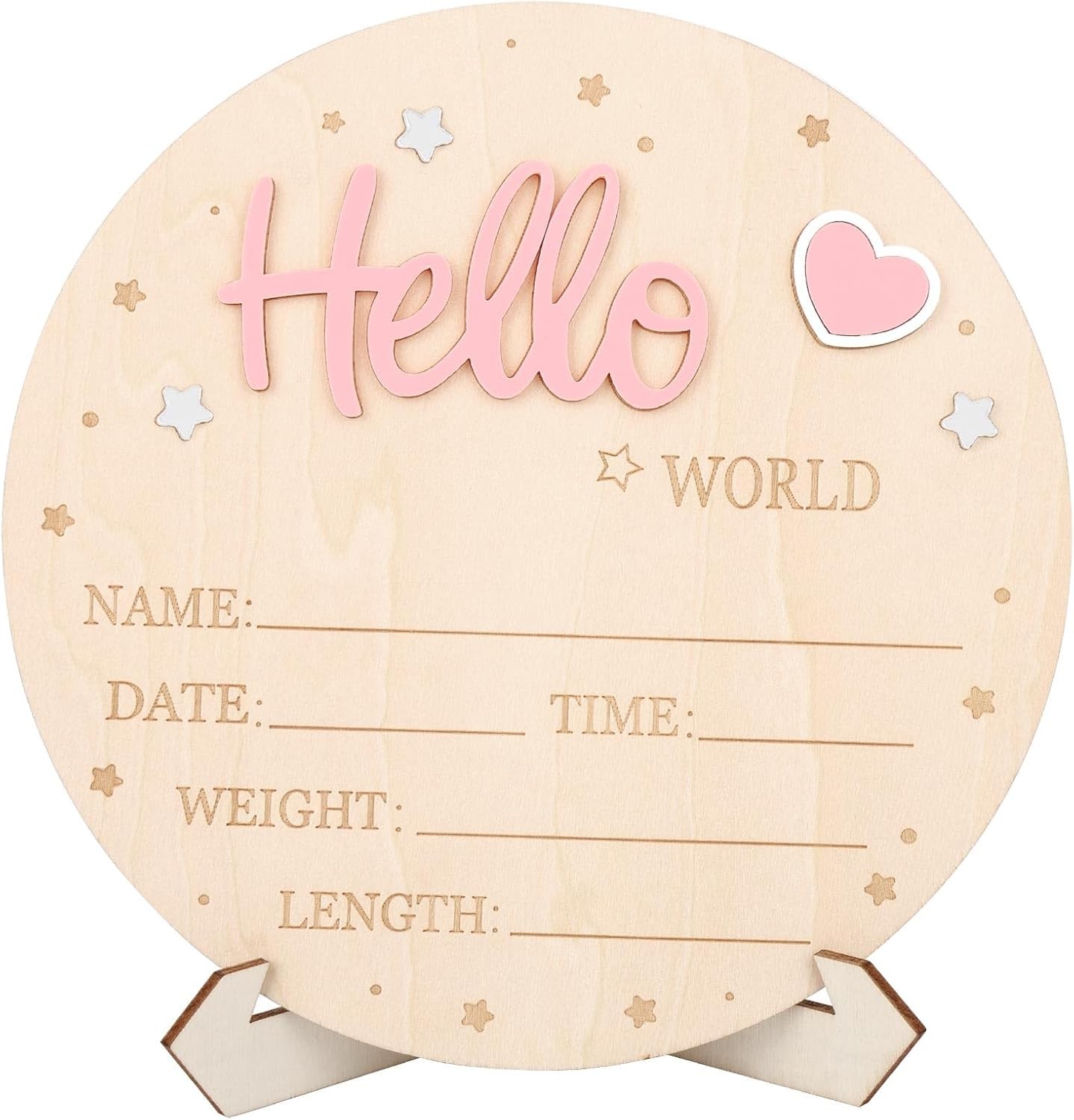 Baby Announcement Sign, Wooden Hello World Newborn Signs Cute Welcome Baby Name