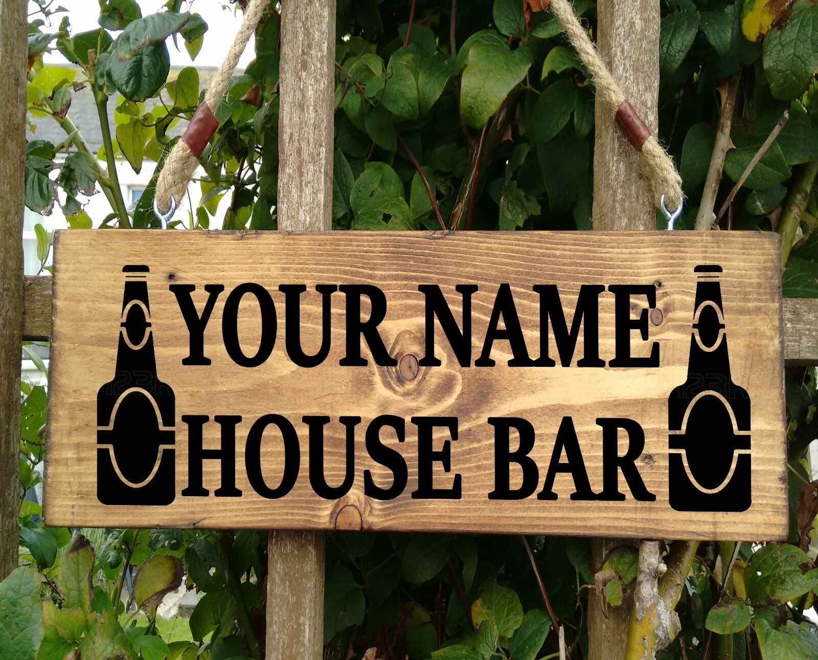 Personalised Wooden Bar House Name Plaque Signs Solid Wood Conservatory Porch.