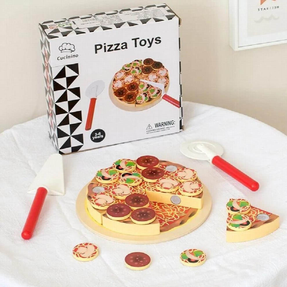 KIXZSAZ Wooden Pizza Toy Kitchen Playset Pretend Play Toy Educational Wooden Simulation Pizza Gift Idea For Children Ages 3 Plus Wood Simulation Pretend Kitchen Playset