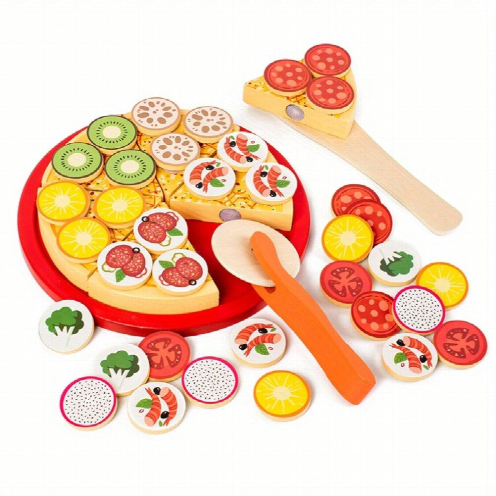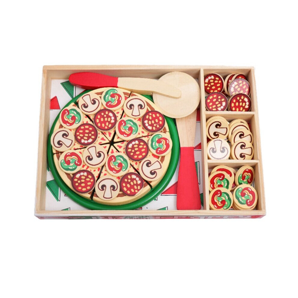 Wooden Simulation Pizza Play Toy Food Cutting Set Kids Role Play, Funny Kitchen