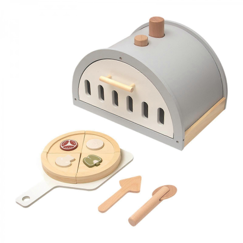 Wooden Pizza Toy Set with Oven Role Play Learning Birthday Gift for Kids