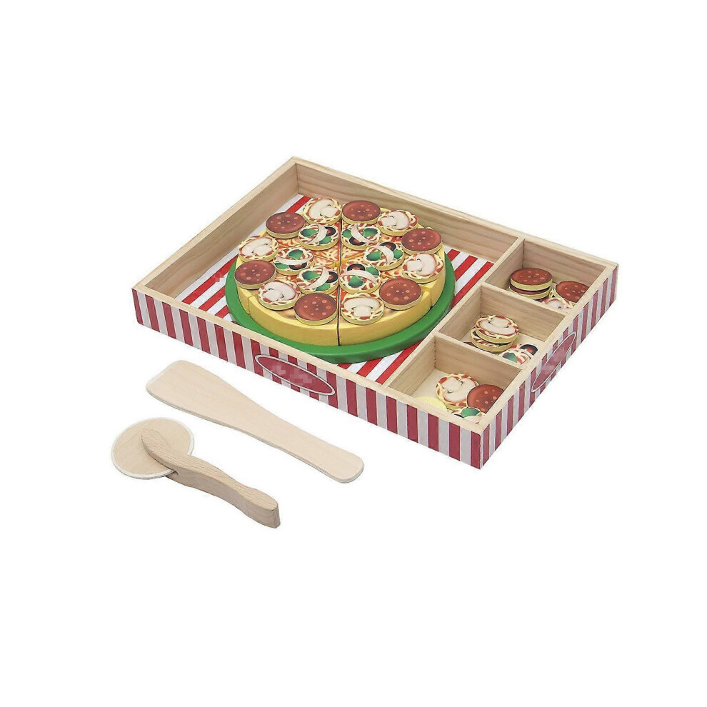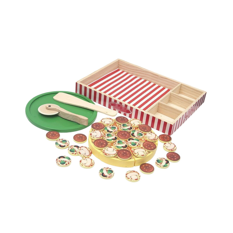 Wooden Pizza Toy Set - 1875g Pretend Play Food Pizza Toy | Educational Hand Eye Coordination Role Play Activity | Wooden Food Toys | For 3+ Years Old Children Boys Girls Christmas Birthday