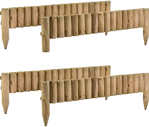 MND Dealings 4-Pack Wooden Fix Picket Log Border Fence, 1m, Brown, for Lawn Edgings, Planters or Garden Sectioning