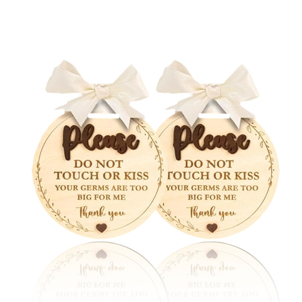 2 Pack Dont Touch Baby Sign for Pram, Wooden Please Do Not Touch Or Kiss Baby Sign, Baby Safety Hang Tags for Pram Car Seat Stroller, Universal Baby