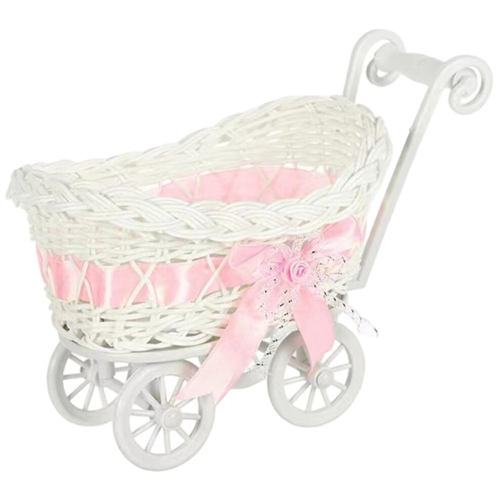 Wicker Baby Carriage, Plastic Candy Basket Pram, 9.5x5.5x6.7 Inch, Wooden Wheels, Vintage Decor, Birthday Party Favors
