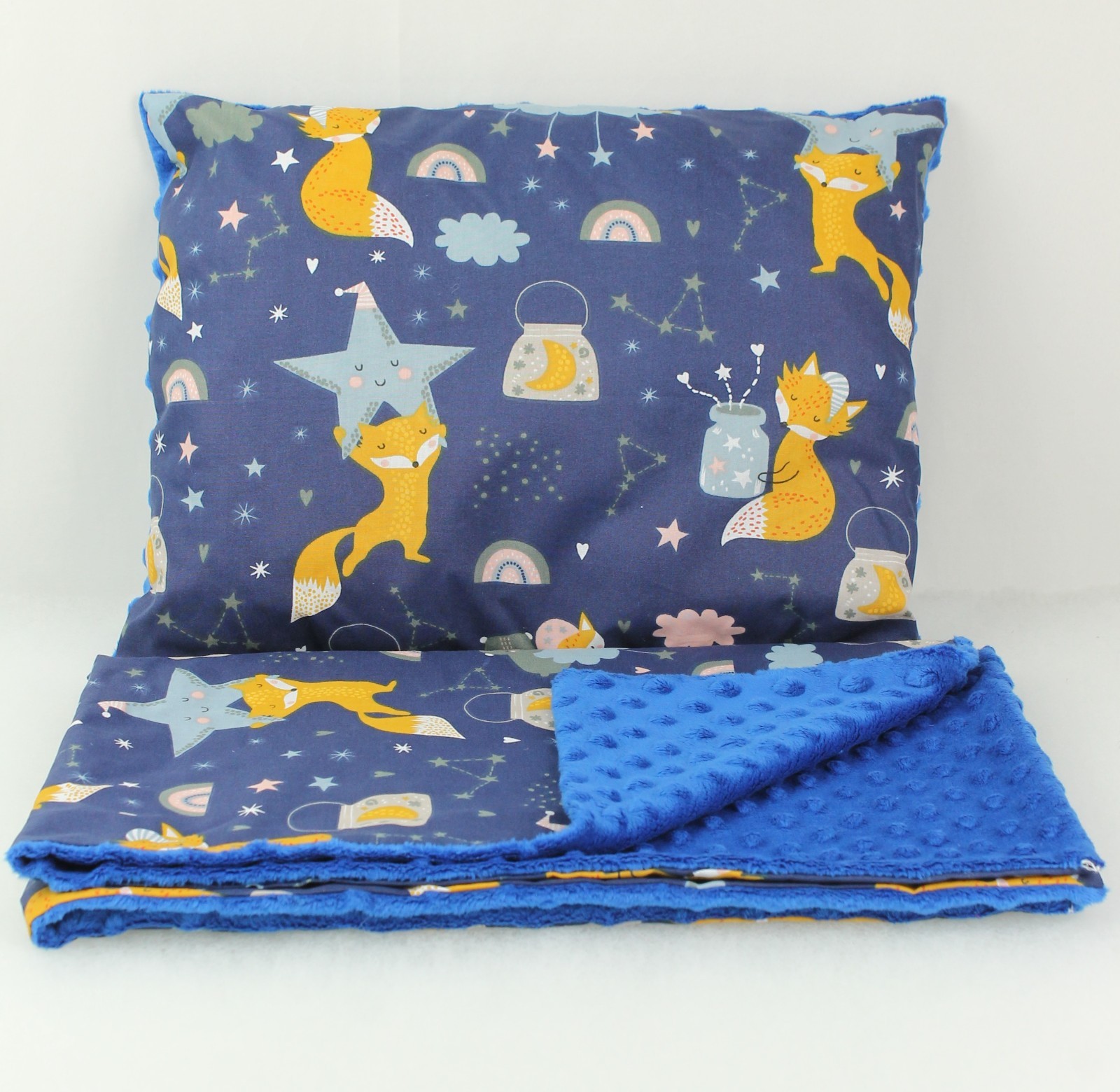 2 pc blanket set for cradle bedside pram wooden crib dimple navy foxes stars