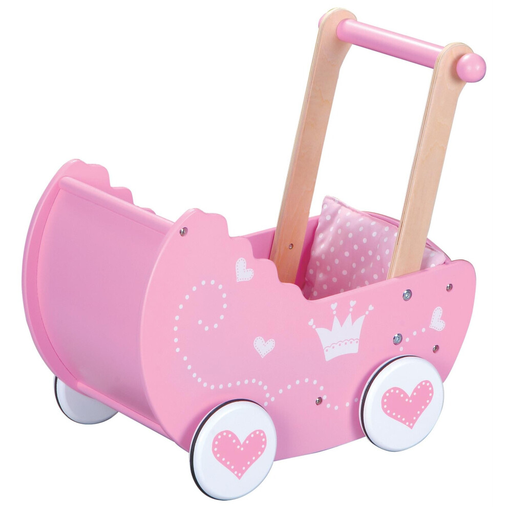 SOKA Wooden Push Along Pink Princess Doll Pram for Boys and Girls