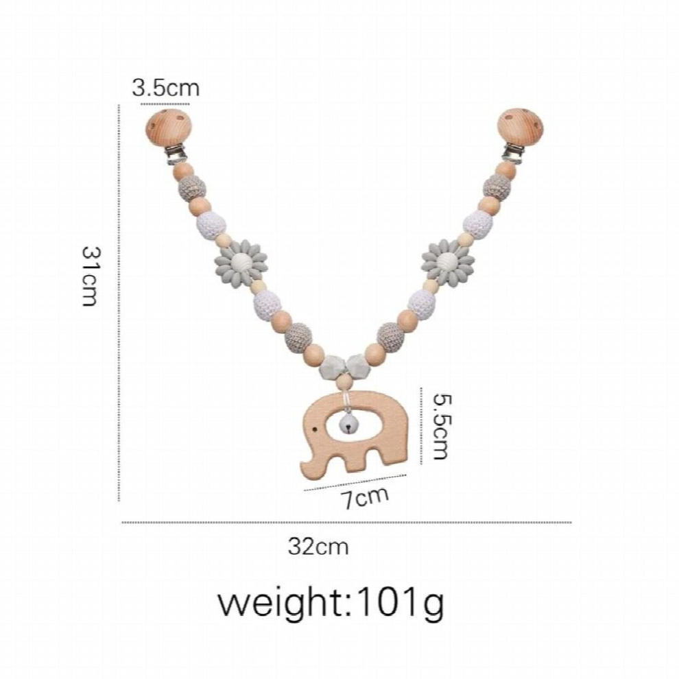 (Elephant, One size) Baby Pram Clip Stroller Hanging Toy Pacifier Chain Clip Stroller Mobile Rattle Bed Bell Wooden Nursing Teething Molar