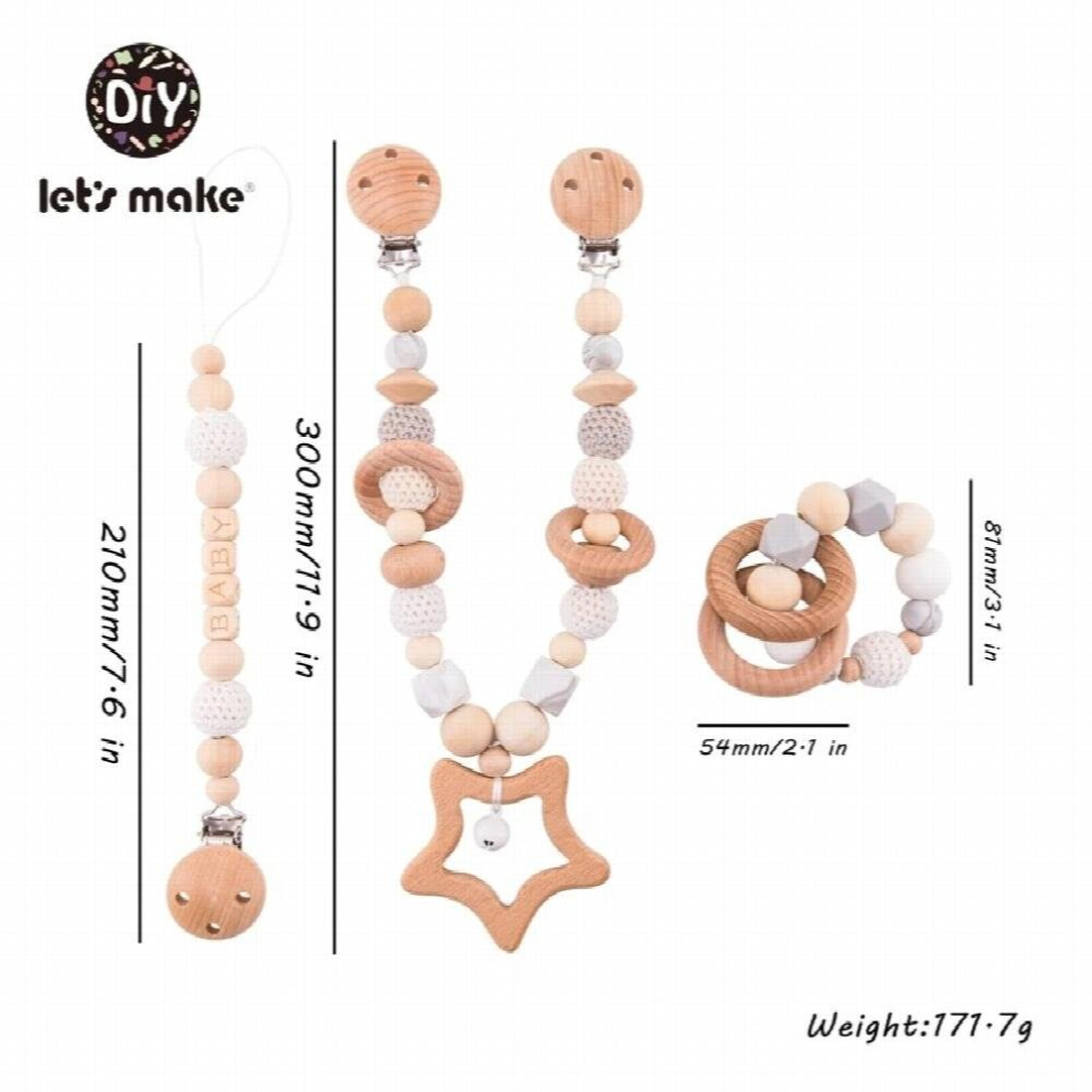1set Baby Wooden Toys Pram Clip Hanging Baby Toys Mobile Bed Holder Music Rattle Personalised Pacifier Dummy Clip Play Gym Toys
