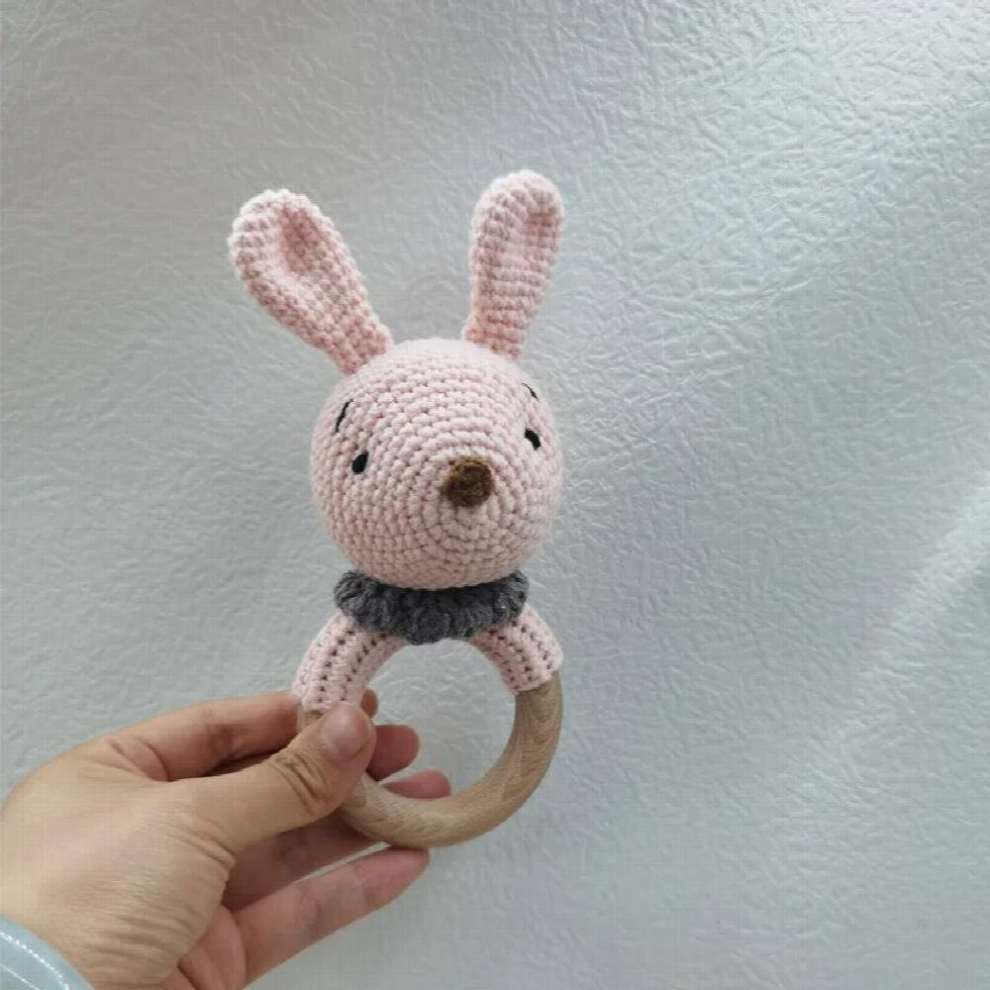 1PC Crochet Animal Bunny Rattle Toy Soother Bracelet Wooden Teether Ring Baby Product Mobile Pram Crib Wooden Toys Newborn