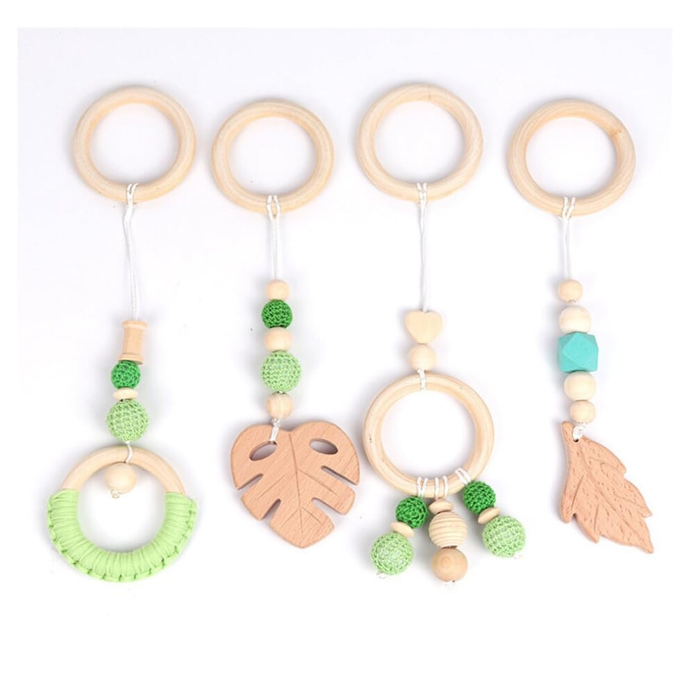 Set of 4 Baby Toy Wooden Teething Ring Pendant Set Handmade Baby Gymnastics Active Game Pram Toys Wooden for Pram and Baby Seat Green