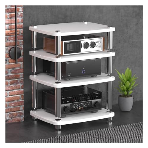 Wzmazingly HiFi Amplifier Rack Audio Cabinet Wooden Record Player TV Stand Media Storage Shelf For Home, Conference Room, Game Studio(White,4-layer)