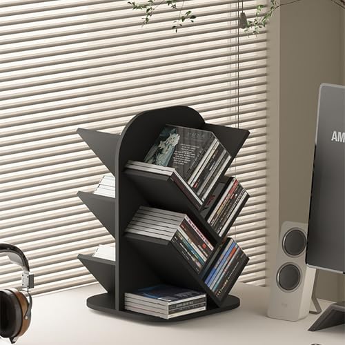 DKPLOE Wooden Record Player Stand Holds Up to 250+ Vinyls 360° Rotatable Mid-Century Vinyl Record Storage Suitable for Bedrooms Living Rooms Cafes and Study Rooms(Black)