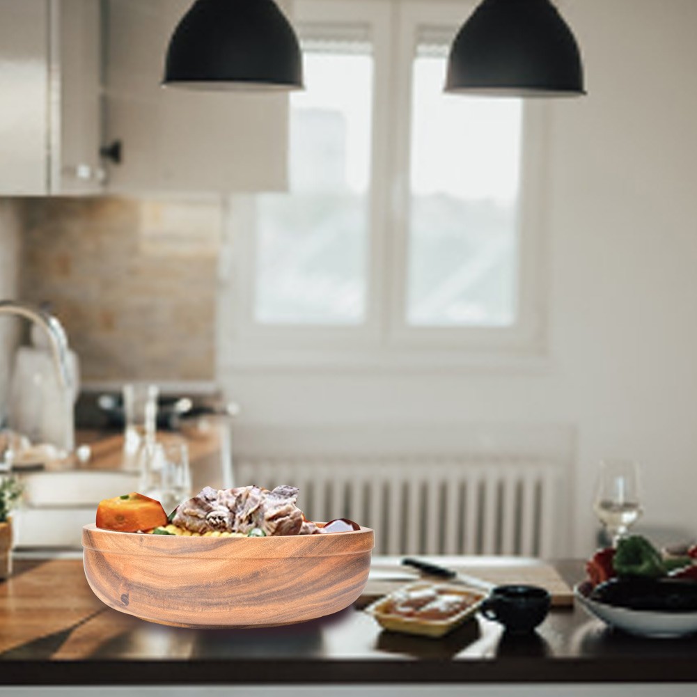 Wooden Salad Bowl Food Fruit Container Dish Tableware Kitchen Utensils30x9cm FI