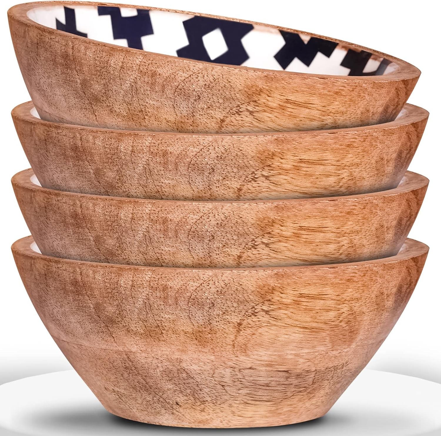 Handmade Rustic Wooden Salad Bowl Set of 4 - Eco Friendly Serving Bowls for Foo