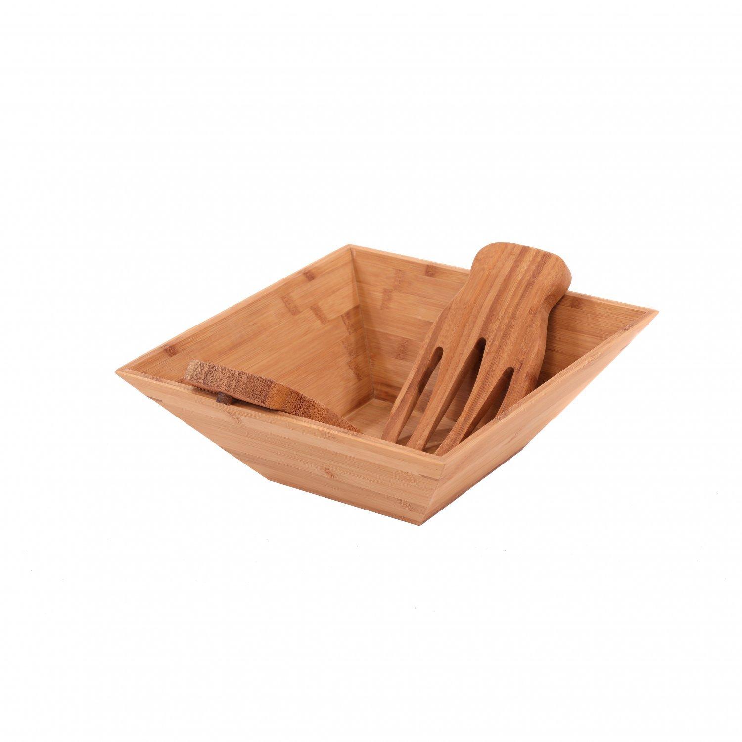 Bamboo Wooden Salad Pasta Mixing Bowl with Serving Tongs