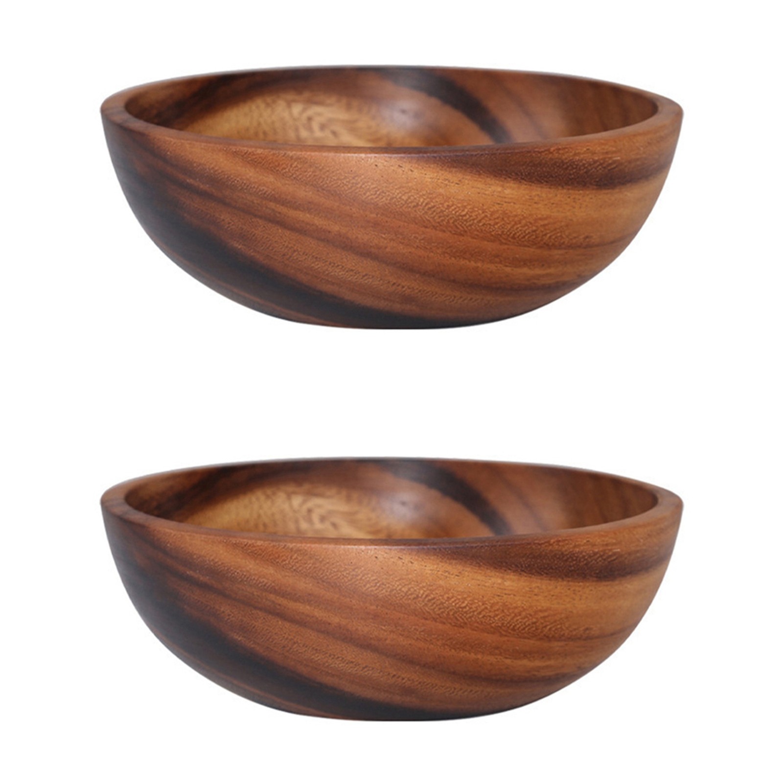 2X(Natural Hand-Made Wooden Salad Bowl Classic Round Salad Soup Dining2951