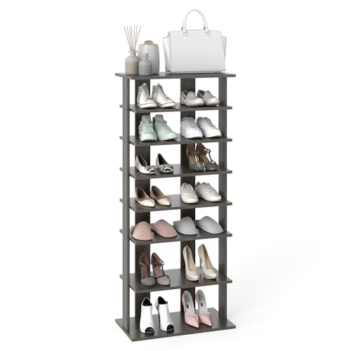 Multigot 7-Tier Shoe Rack, Wooden Shoe Shelf Organizer Unit, Space-Saving Single/Double Storage Stand (Grey, 27 x 26 x 110cm)