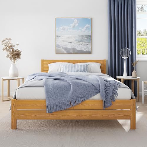 Nodax Double Bed Frame 4ft6 – Solid Pine Wooden Bed Frame for Adults, F1 Easy Assemble Bed with Sturdy Slats & Extra Four Supportive Legs, Comfortable Bedroom Furniture | (Oak)