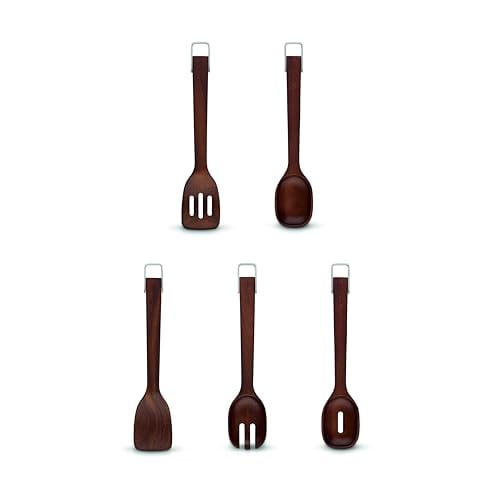 Sur La Table, Set of 5 Wooden Utensils, Solid Turner/Solid Spoon/Slotted Turner/Slotted Spoon/Salad Fork, Easy to Clean, Walnut