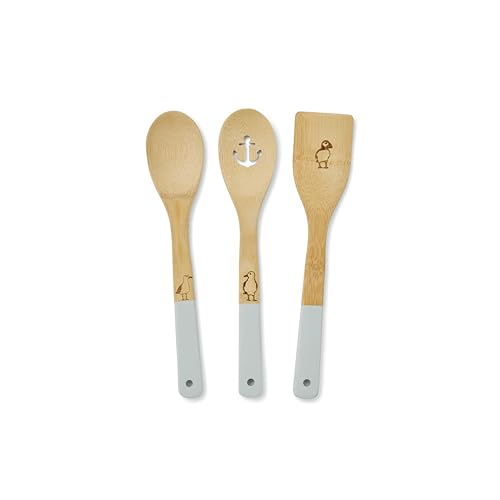 Cooksmart British Designed Bamboo Wooden Spoon Set | Wooden Cooking Spoons Set Made from Bamboo | Lovely Designed Wooden Cooking Utensils Set for Everyday Cooking - Coastal Birds