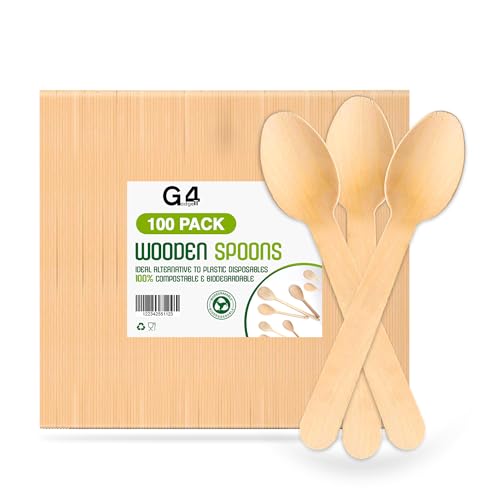 G4GADGET 100x Wooden Spoons - Disposable Spoon Biodegradable Birch Wood Utensils for Parties, Picnics, Weddings, BBQs, and Events