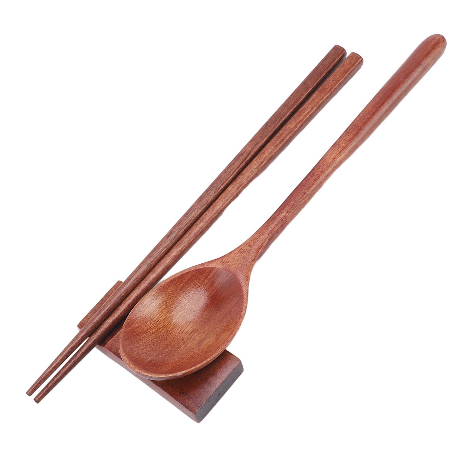 Portable Wooden Spoon And Chopsticks Set Travel Tableware Utensils Reusable