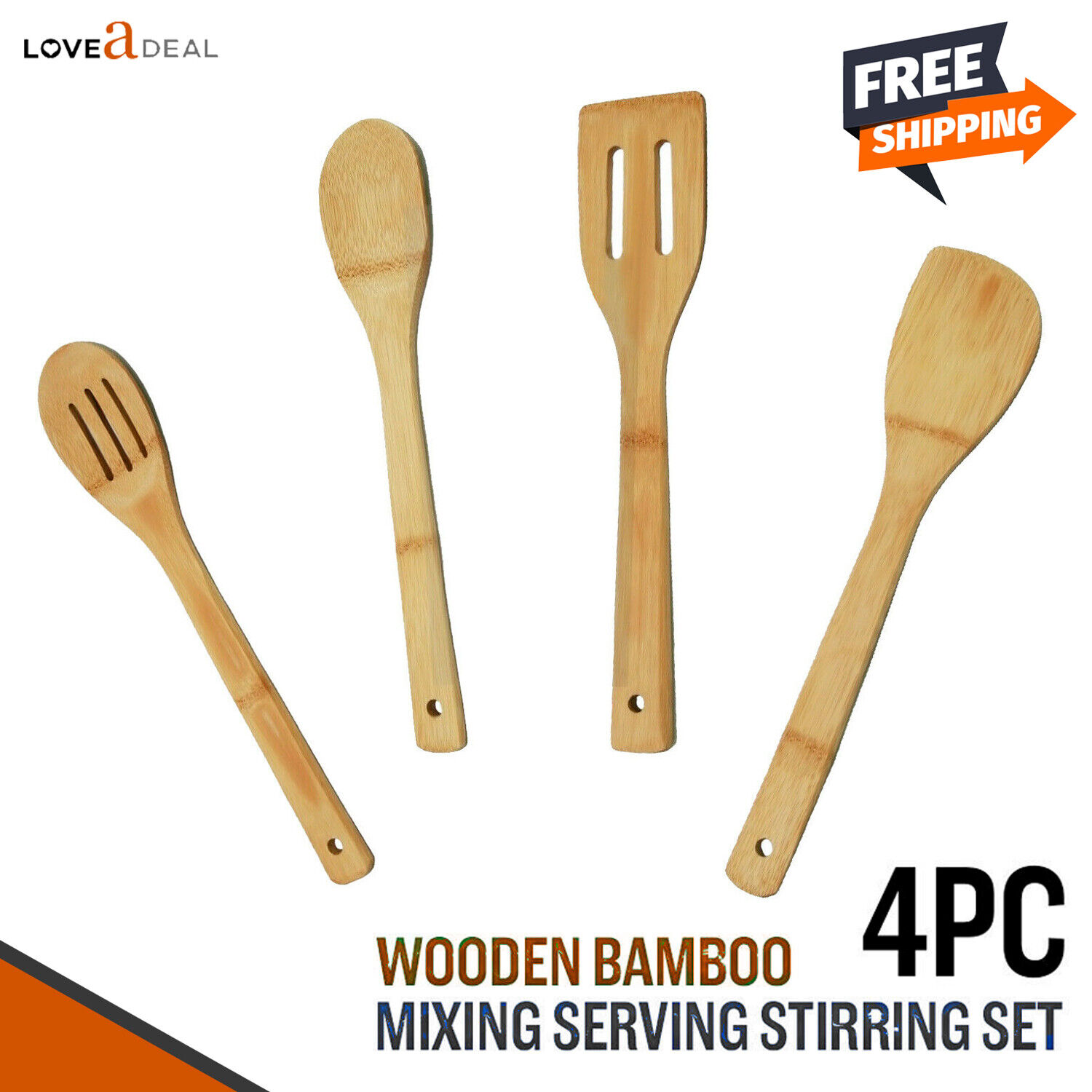 4Pc Wooden Kitchen Cooking Spatula Set Utensils Stir Mixing Spoon Turner Tools