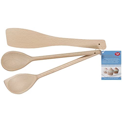 Tala Set of 3 Wooden Cooking Utensils - Wooden Spatulas for Cooking, Spoon & Scraper Spoon - Heat Resistant, Easy to Use, Easy to Clean - Bakeware Accessories - Set of 3