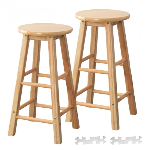 FENGSHENG-SHOP Set of 2 Wooden Bar Stools, 60cm Tall Seat Height, Rustic Wood High Stools, Indoor Outdoor Kitchen Garden Breakfast Counter Barstools