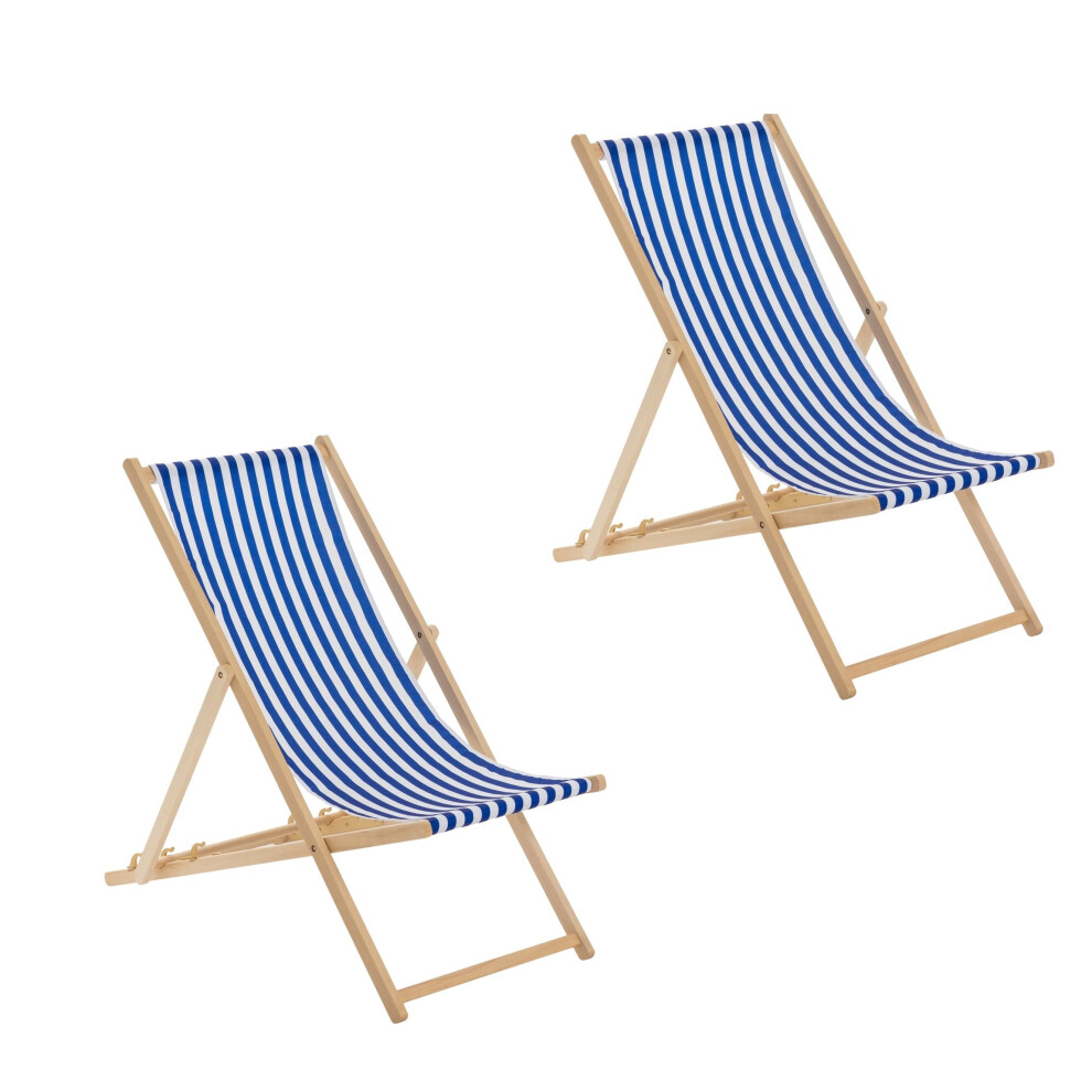 Set of 2 Wooden Sun Loungers Deck Chairs Garden Beach ( blue stripe )