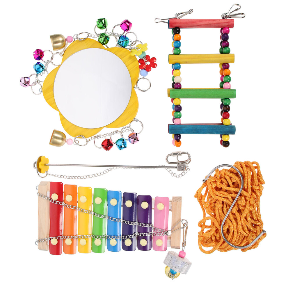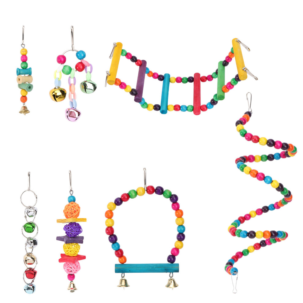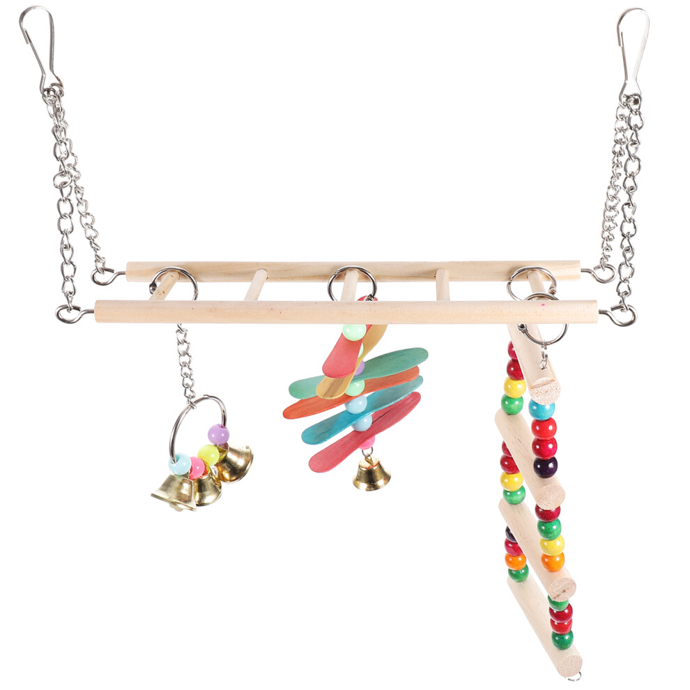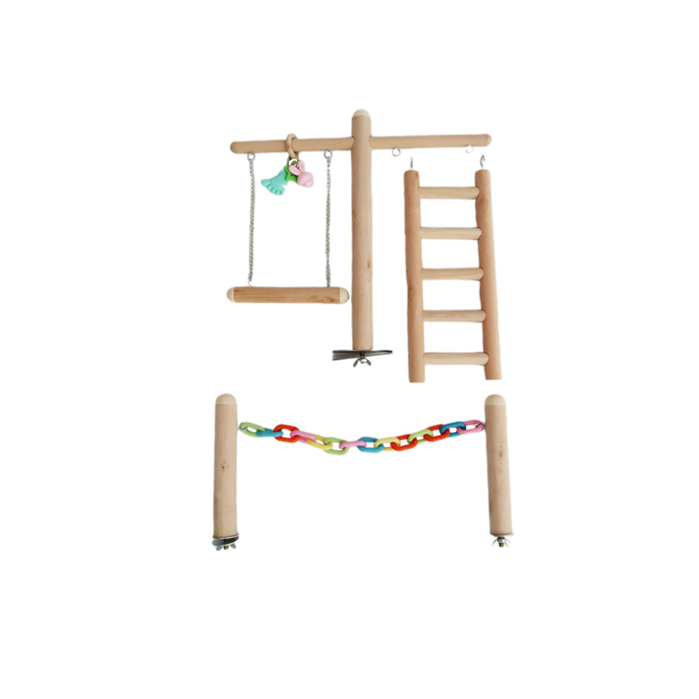 4 Sets Parrot Perch Ladder Swing Toy Wooden Chewing Bird Swing