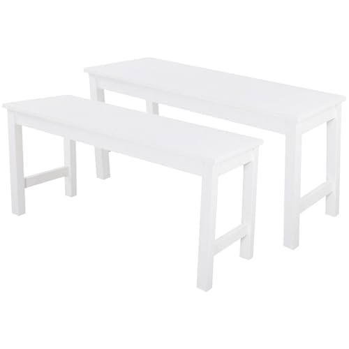 BTGGG 2pcs Dining Bench, 90cm x 35cm x 45cm Wooden Dining Room Table Bench, Outdoor Indoor Home Kitchen Benches for Living Room Bedroom Hallway Patio Backyard, White