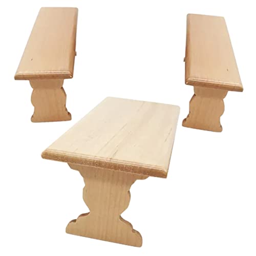 VANZACK Scale Dollhouse Miniature Wooden Long Table and Bench Realistic Mini Furniture for DIY Models Home Decor Graduation Design and Educational Accessory