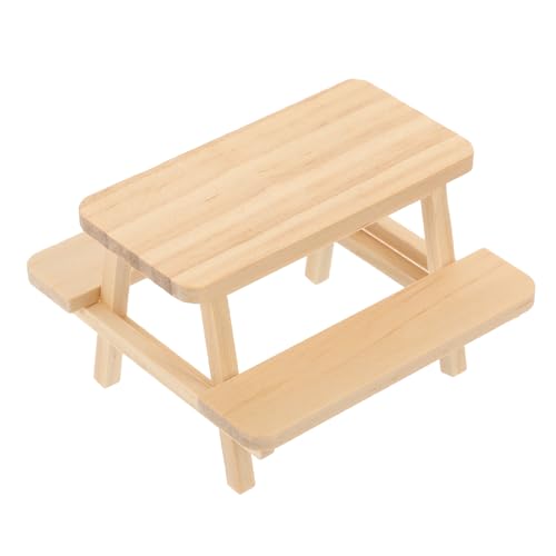 HEMOTON Miniature Wooden Picnic Table and Bench Dollhouse Furniture Small Doll House Accessory for Miniature Scene Decoration and Photo Props
