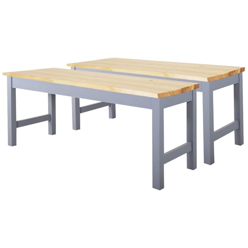 BTGGG 2pcs Wooden Dining Room Table Bench, 90cm x 35cm x 45cm Indoor Dining Bench for Home Kitchen Living Room Bedroom Hallway Doorway, Grey with White Frame