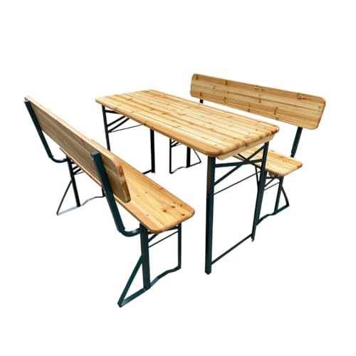 Warmiehomy Folding Table and Bench Set Outdoor 3 PCS Furniture Sets Wooden Garden Beer Table Bench (Table and Bench Set-C)