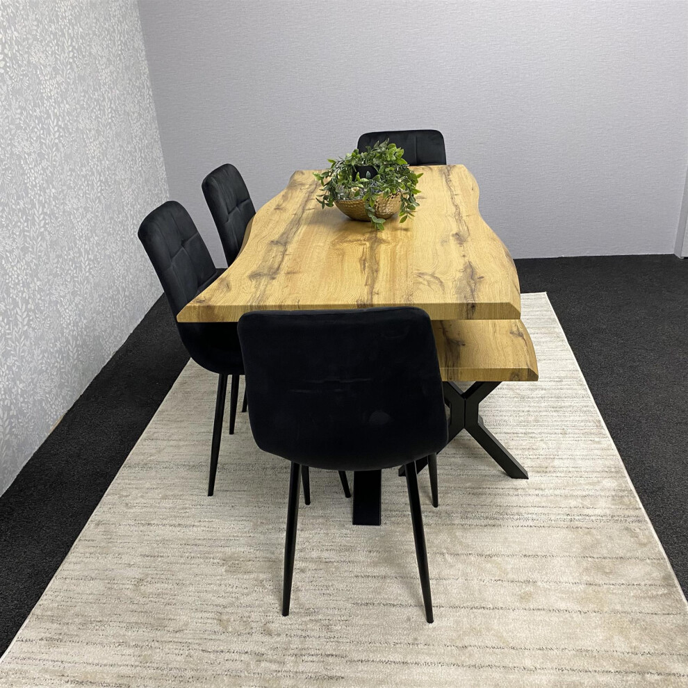 Wooden Dining Table with Bench and 4 Black Velvet Chairs
