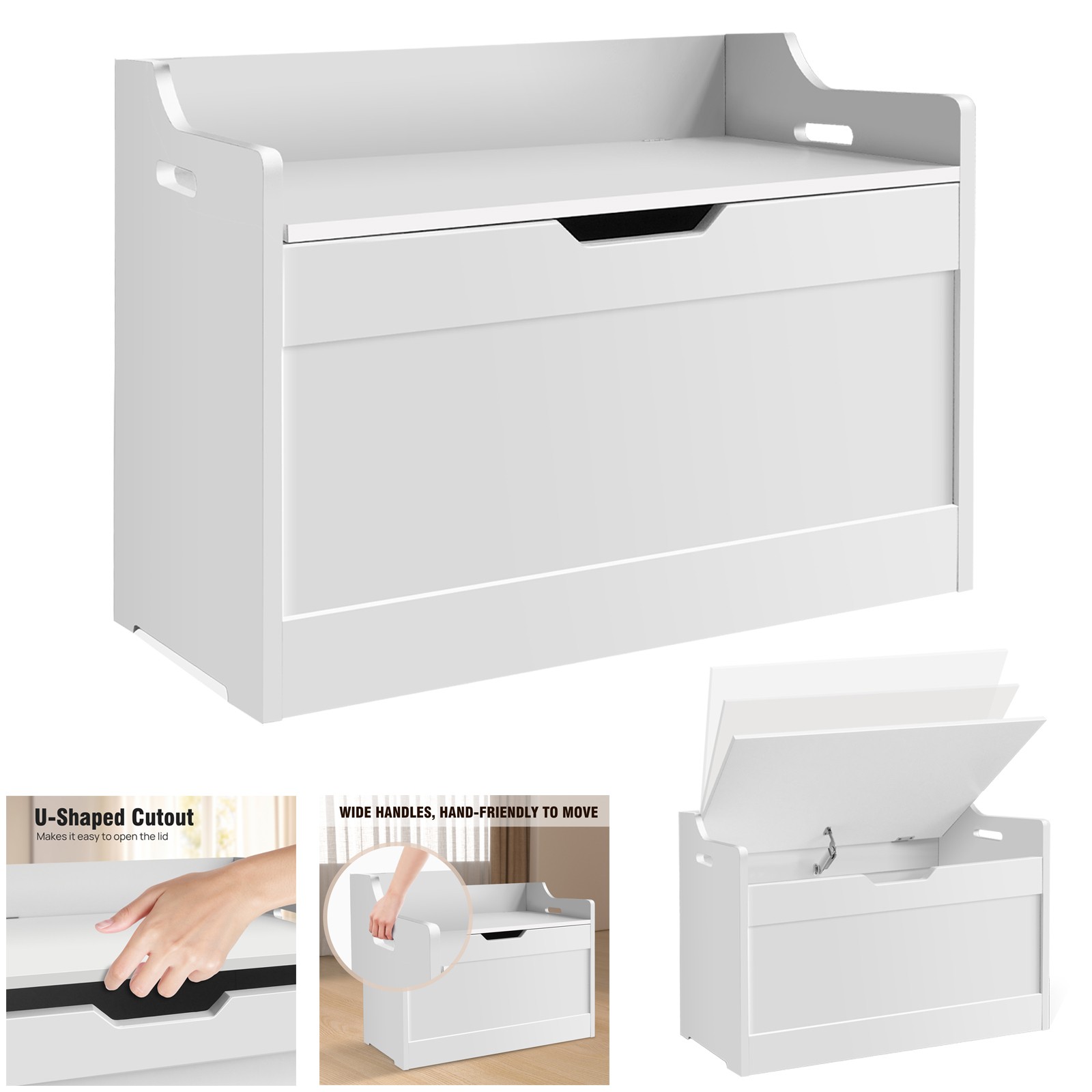 Duffy White Wooden Large Children Kids Storage Bench Toy Chest -White Storage Space Toy Box Chest Ottoman Bench Foot Rest Seat for Bedroom and Living Room, 80.2 x 40 x 44.5