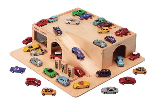 Wooden toy car garage