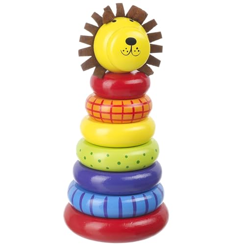 Lion Stacking Rings - Wooden Stacking Toys, Counting with Numbers 1-4 - Wooden Toys for 1 Year Olds, Toddler - Educational Montessori Toys, Early Development & Activity Toys by Orange Tree Toys