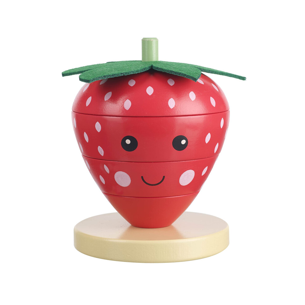 Strawberry Stacking Rings - Wooden Stacking Toys, Counting with Numbers 1-4 - Wooden Toys for 1 Year Olds, Toddler - Educational Montessori Toys,