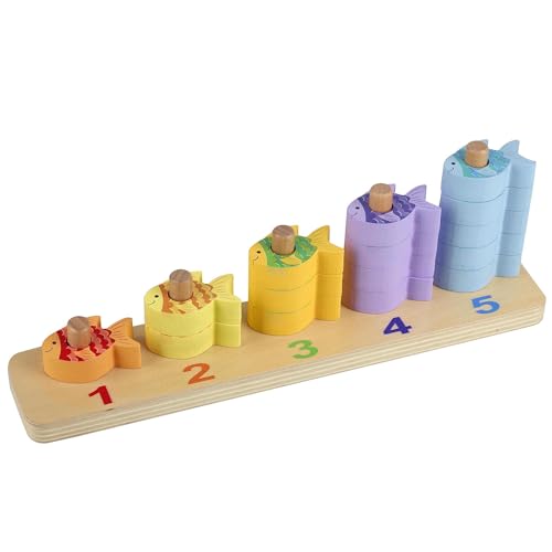 Orange Tree Toys Counting Fish Stacking Game - Animal Stacking Toy - Wooden Stacking Toys for 1 Year Olds - Toddler Early Development & Activity Toys - Early Development & Activity Toys