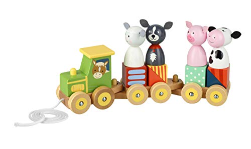 Farm Animal Puzzle Tractor Toy – Push and Pull Along Stacking Toys for 1 Year Olds, Toddler - Wooden Puzzle Shapes, 1st Birthday Gifts For Boy, Girl - Farmyard Stacking Toys by Orange Tree Toys