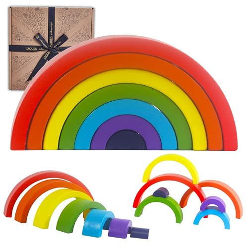 Jaques of London Wooden Stacking Rainbow Toy | Montessori Wooden Toys for 1 year olds + | Toddler Stacking & Balancing Games | Since 1795