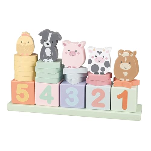 Orange Tree Toys Farm Animals Counting Stacking Toy - Wooden Stacking Toys for 1 Year Olds, Animal Stacking Rings - Educational Montessori Toddler Toys, Early Development & Activity Wooden Toys