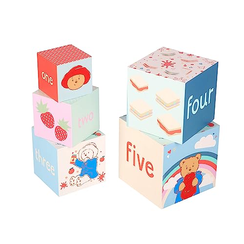 Orange Tree Toys Paddington Bear Stacking Cubes, Wooden Toys for 1 Year Olds, Toddler - Montesorri Stacking Toys, Nesting Boxes Balancing Building Blocks, Counting with Numbers 1-5, Paddington Gift