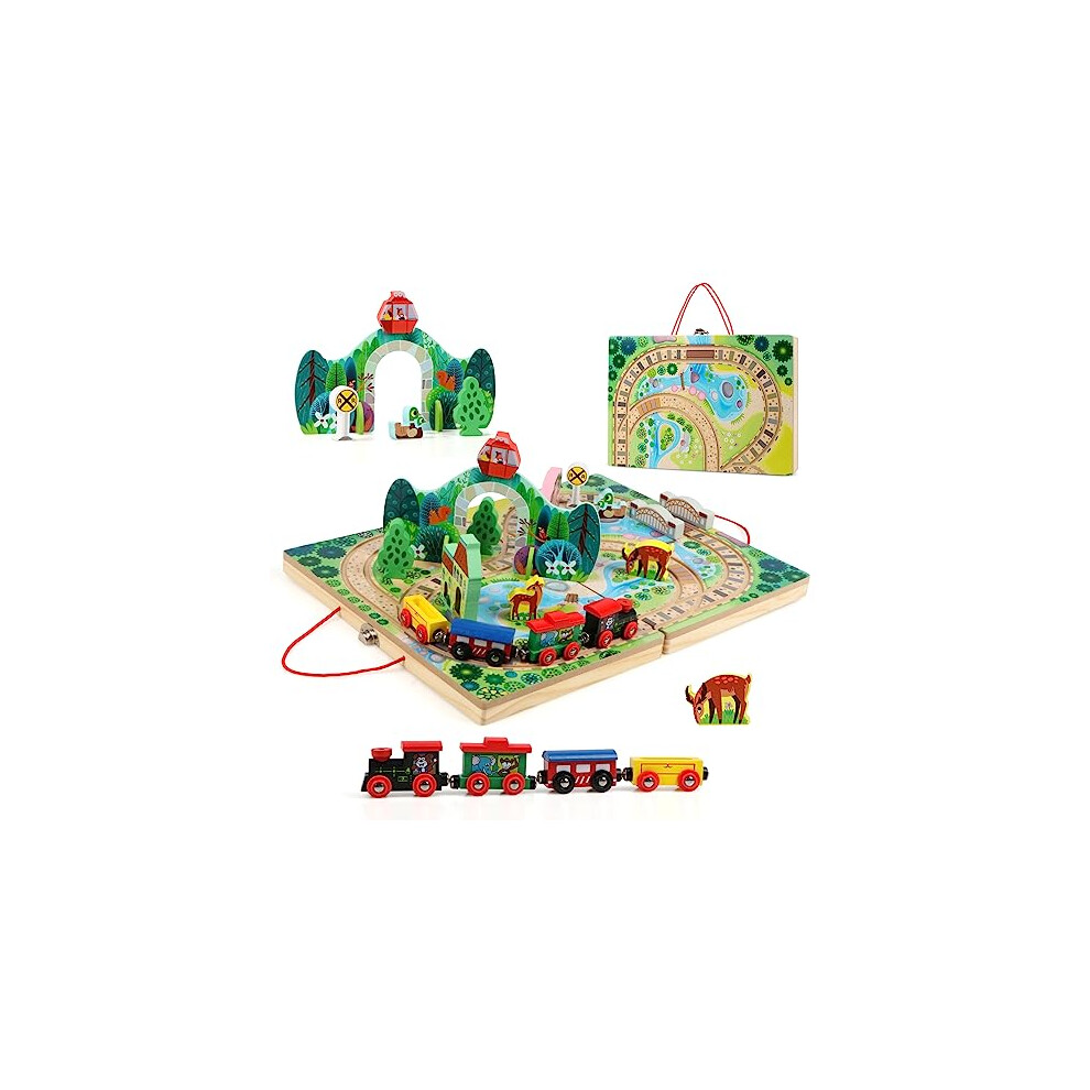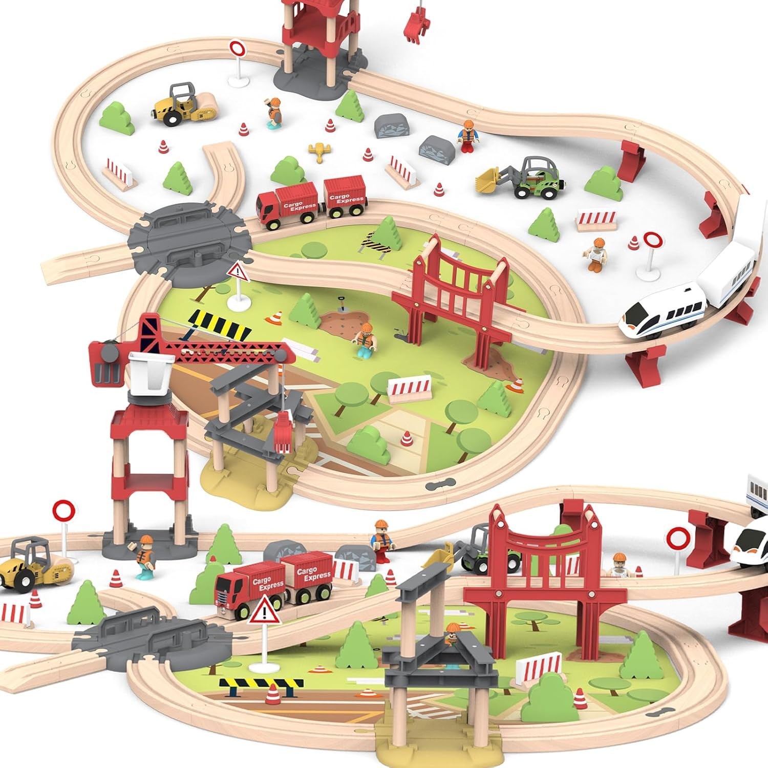 JugueteLand 104 Pcs Wooden Train Toy Set for Toddlers, Magnetic Trains with Track for Kids Ages 3-6, Compatiable with Major Brands, Construction Railway Playset Gifts for Boys and Girls Ages 3+