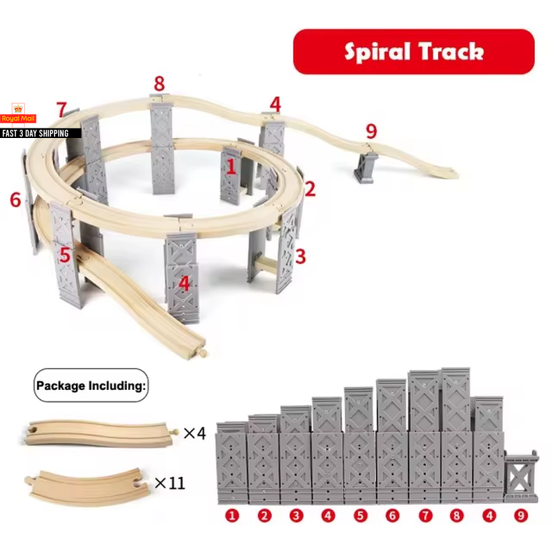 9-26PCS Wood Railway Tracks Accessories Plastic Spiral Wooden Train Tracks With