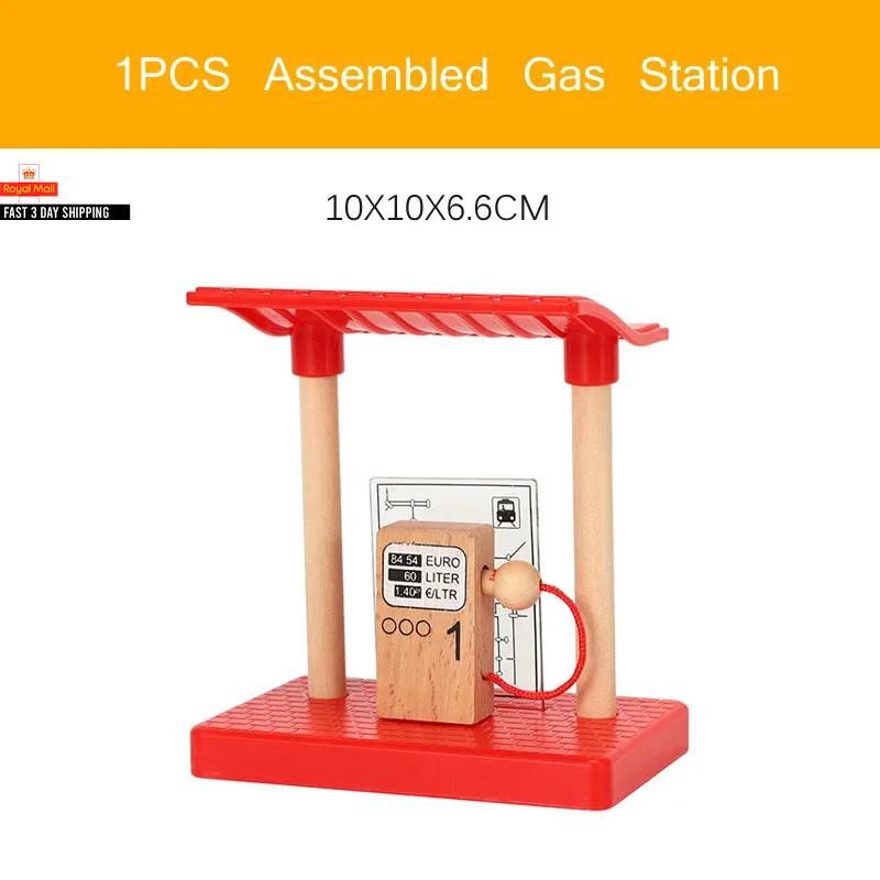 Wooden Train Tracks Scene Accessories Wooden Double Platform Gas Station Airplan
